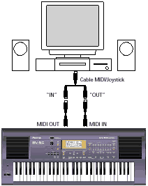 entre MIDI OUT y MIDI IN.