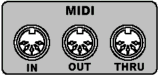 (MIDI IN, MIDI OUT y MIDI THRU)