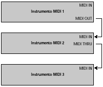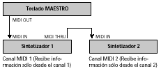equipos esclavos (o de MIDI THRU a MIDI IN).